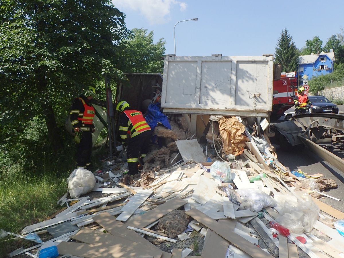 Z náklaďáku, který jel z Karlových Varů směrem na Dalovice, spadl v úterý dopoledne velkoobjemový kontejner na odpad, který dopadl přímo na autobusovou zastávku.