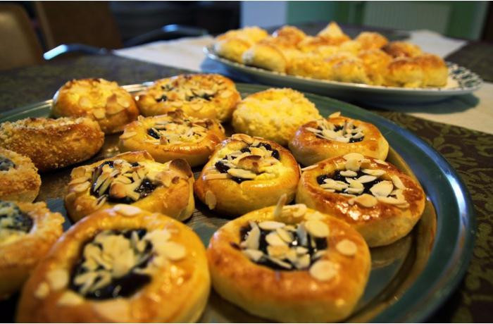 Na náplň pak bude zapotřebí půl kila tvarohu, hrst rozinek, jedno vejce, lžíce másla, balíček vanilkového cukru, hrst citronové kůry, povidla, drobenku a cukr.